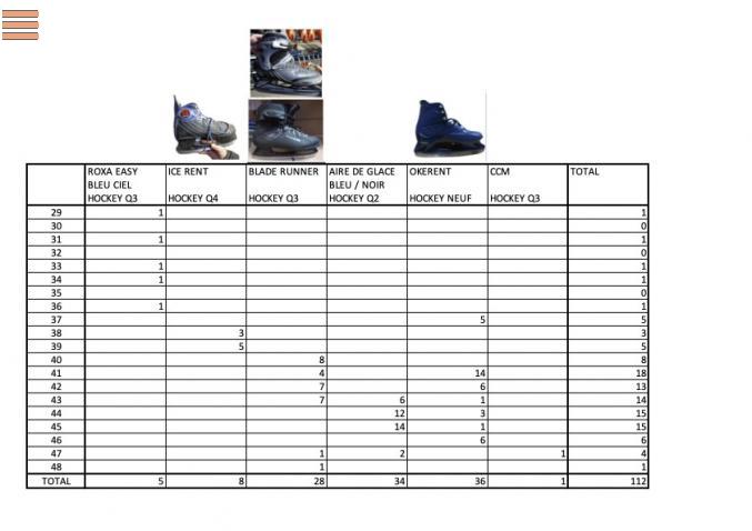 LOT DE 112 PAIRES DE PATINS HOCKEY OCCASION (Référence : 9046-H)